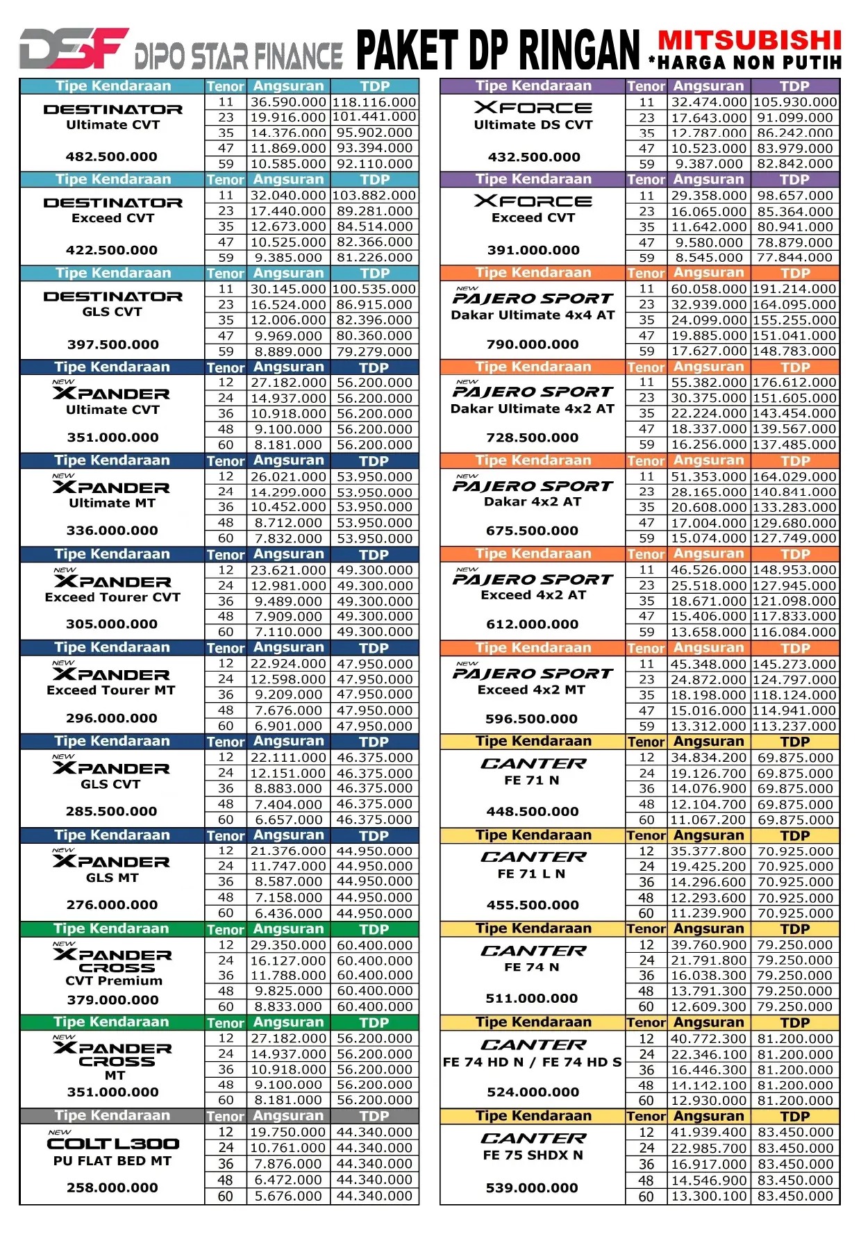 | PAJERO SPORT DAKAR 4X2 A/T | Rp 678.500.000 |